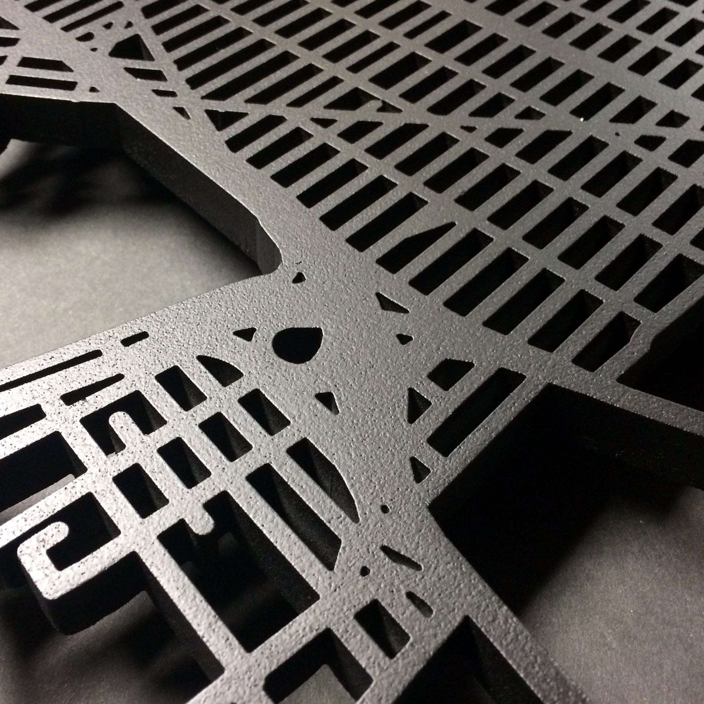 Black or white painted finish over a 1/2" laser cut HDU base. Your choice of satin or matte clear top coat for high durability.