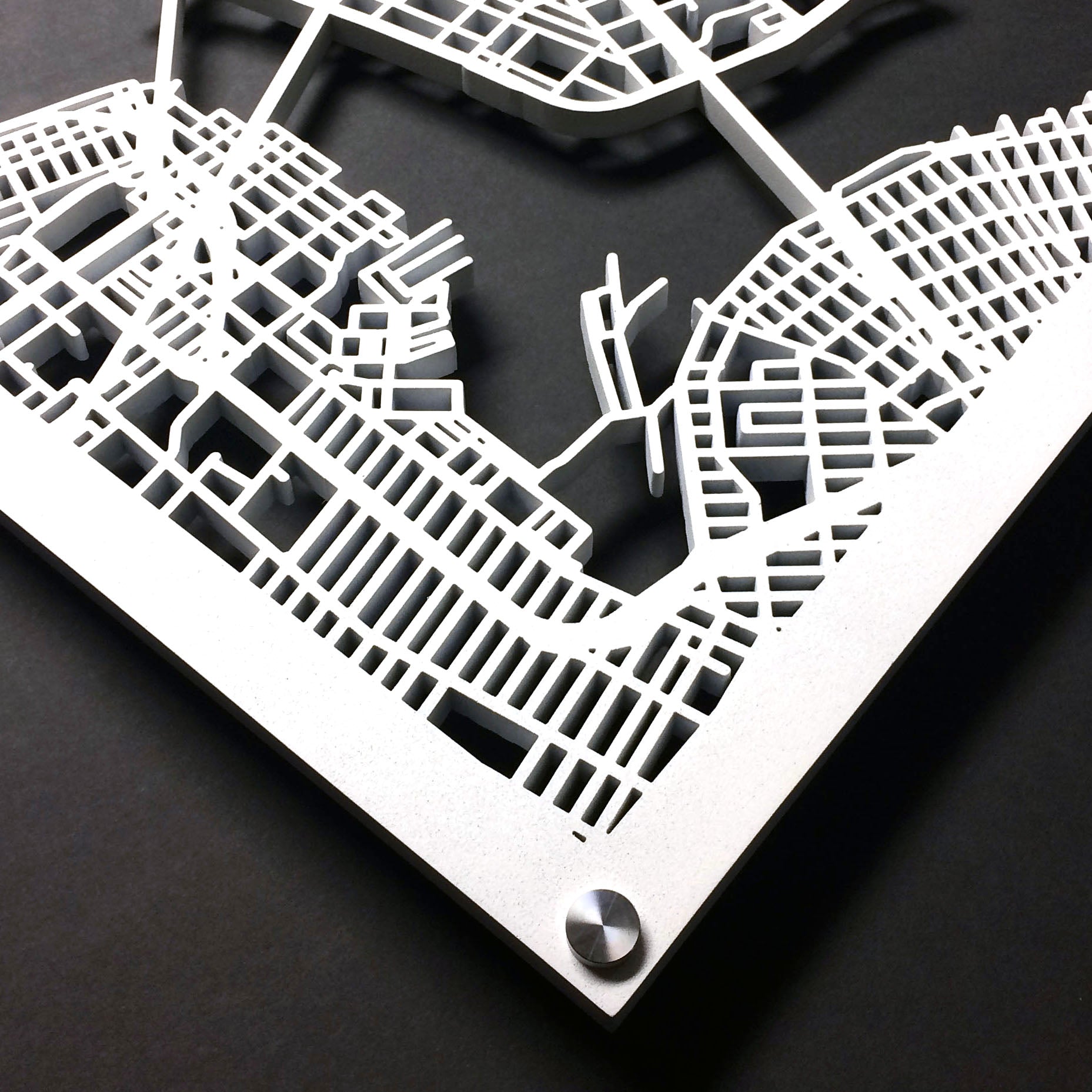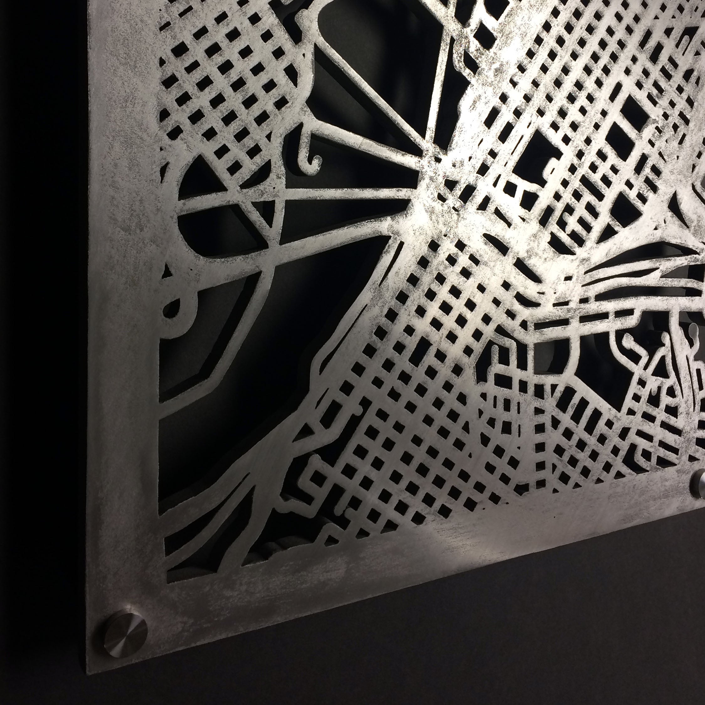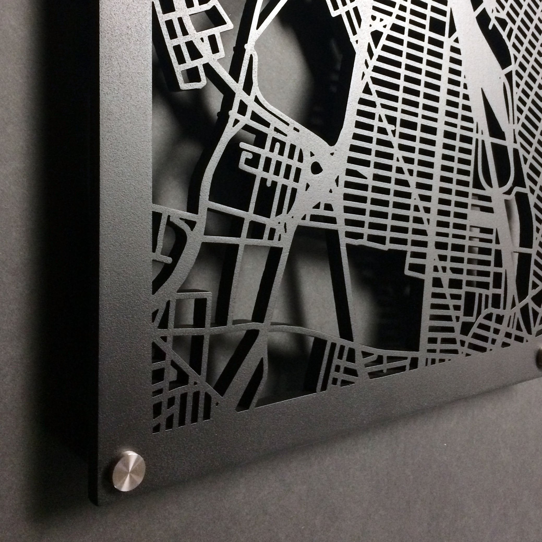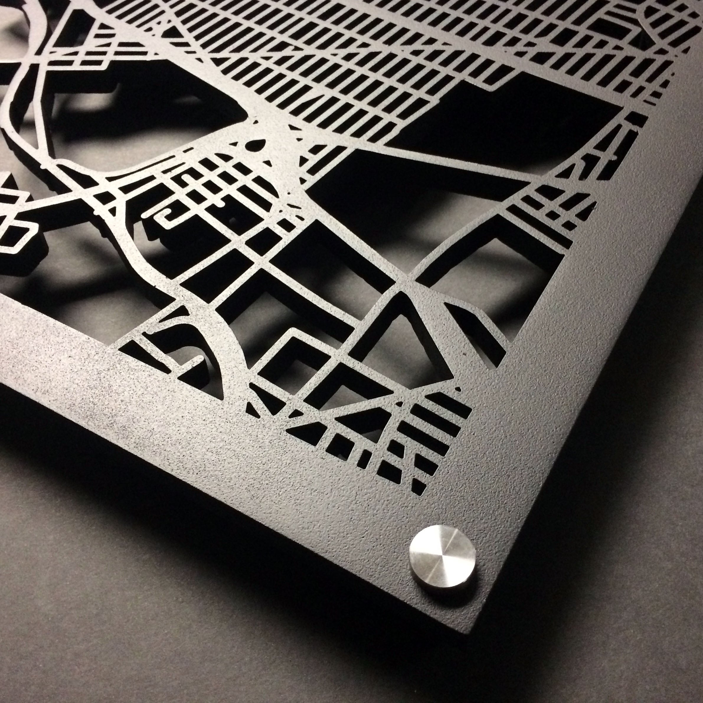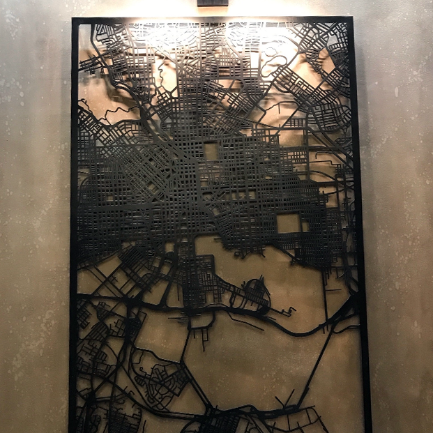 Crafted laser cut map panels for hotel lobbies, city halls, hospitals, and more. Design a unique art piece for your professional space.
